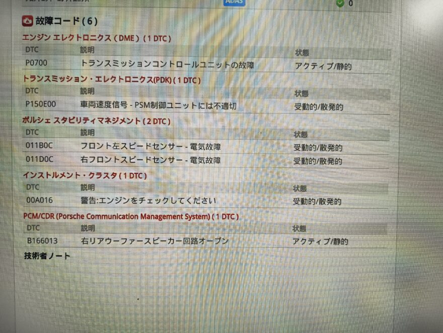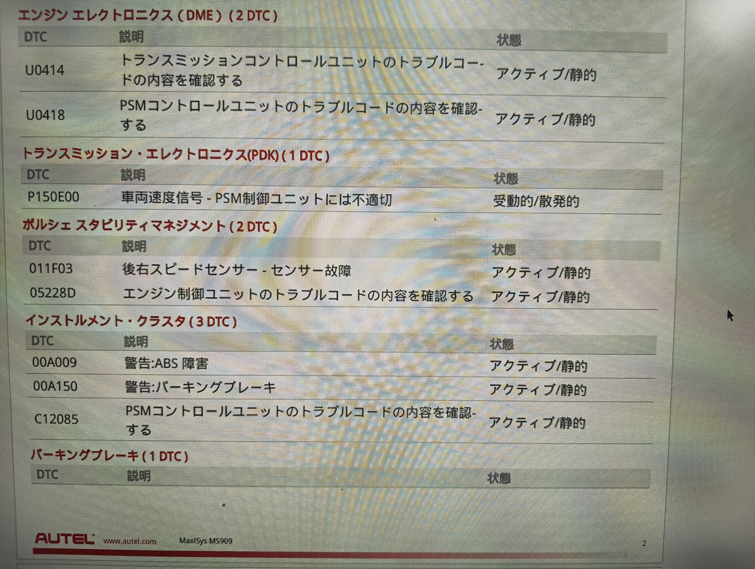 大阪府Y様 ポルシェマカン ABS・横滑り警告点灯