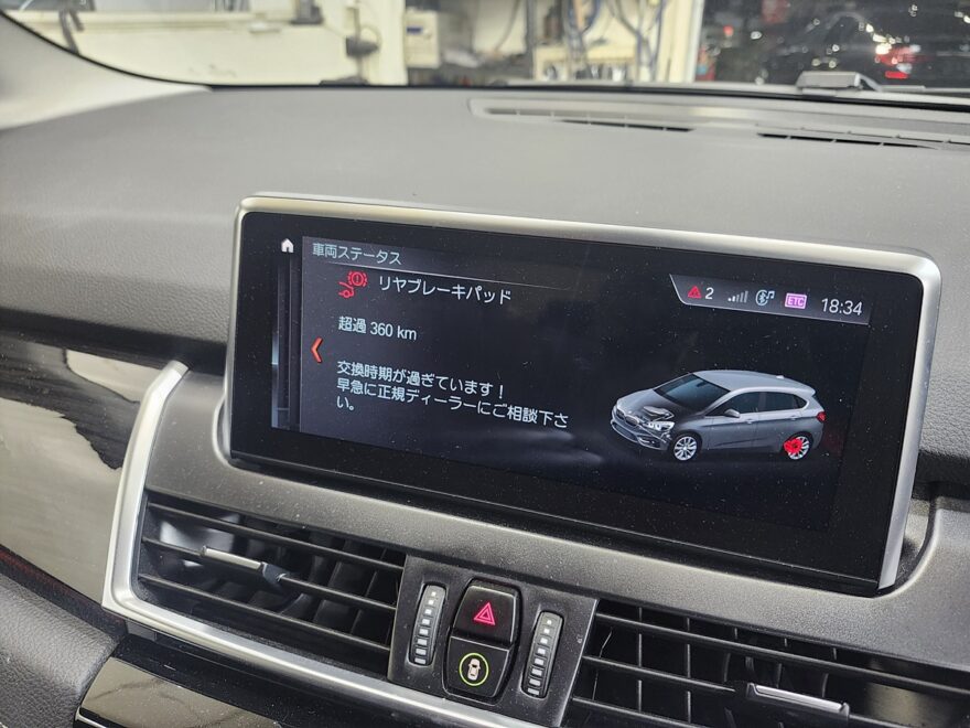 i-Driveの車両ステータスを確認すると、リアブレーキパッドの残量が少なくなっている警告でした。