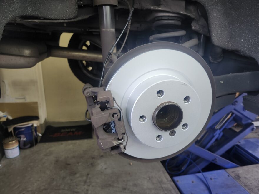整備モードになったらリフトアップし下廻りやブレーキ廻りなどの点検です。