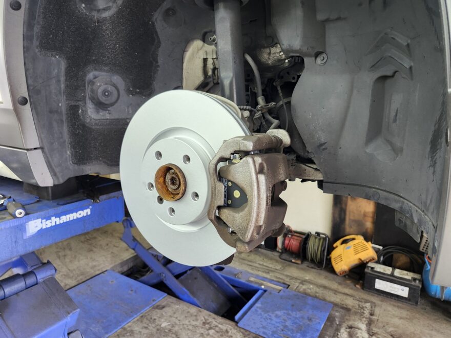 先日、エンジンオイル交換でご来店された際に、フロントブレーキの警告が出ていました。