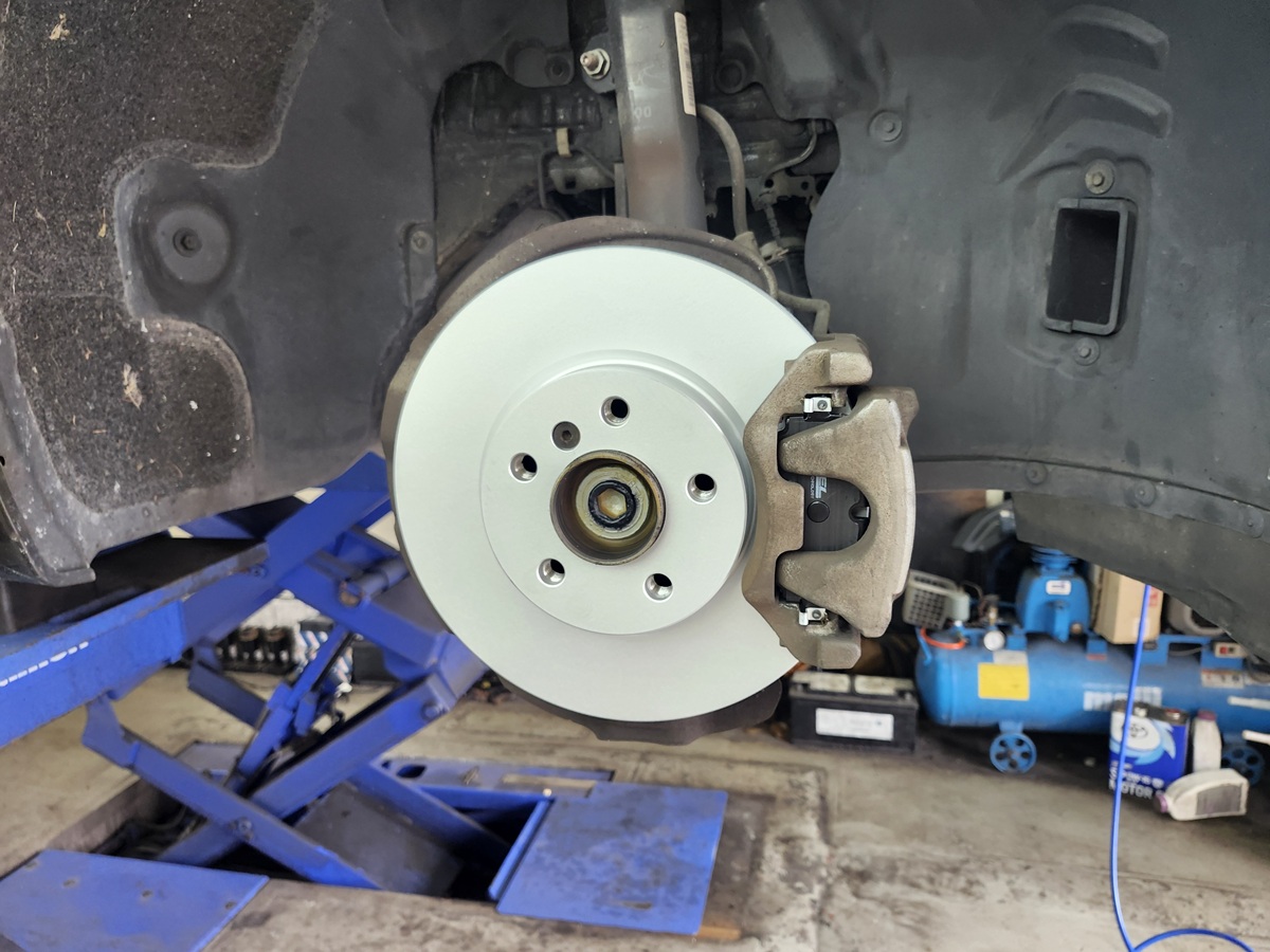 T様にフロントブレーキ交換のお見積もりをお伝えし、お車をお預かりしました。
