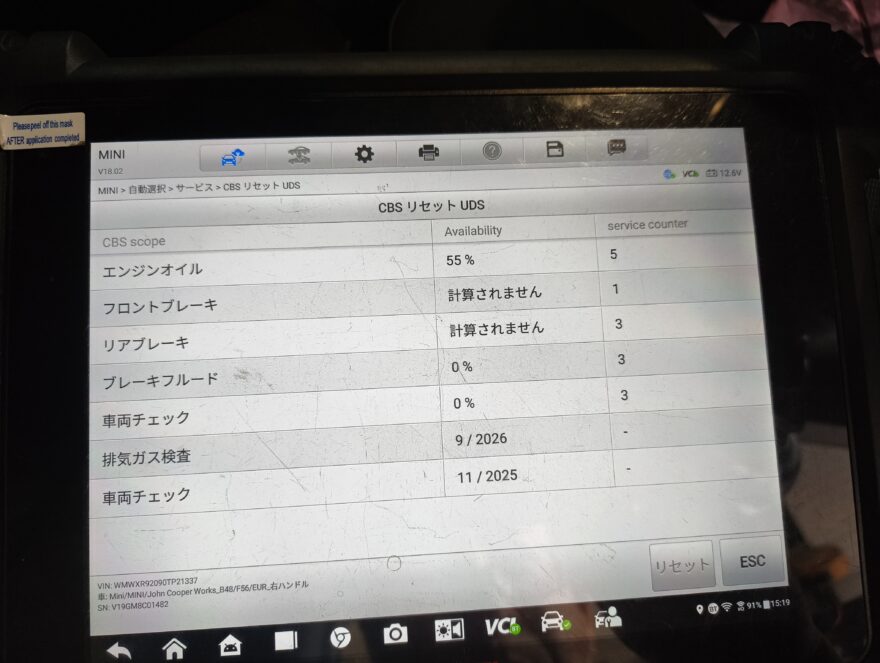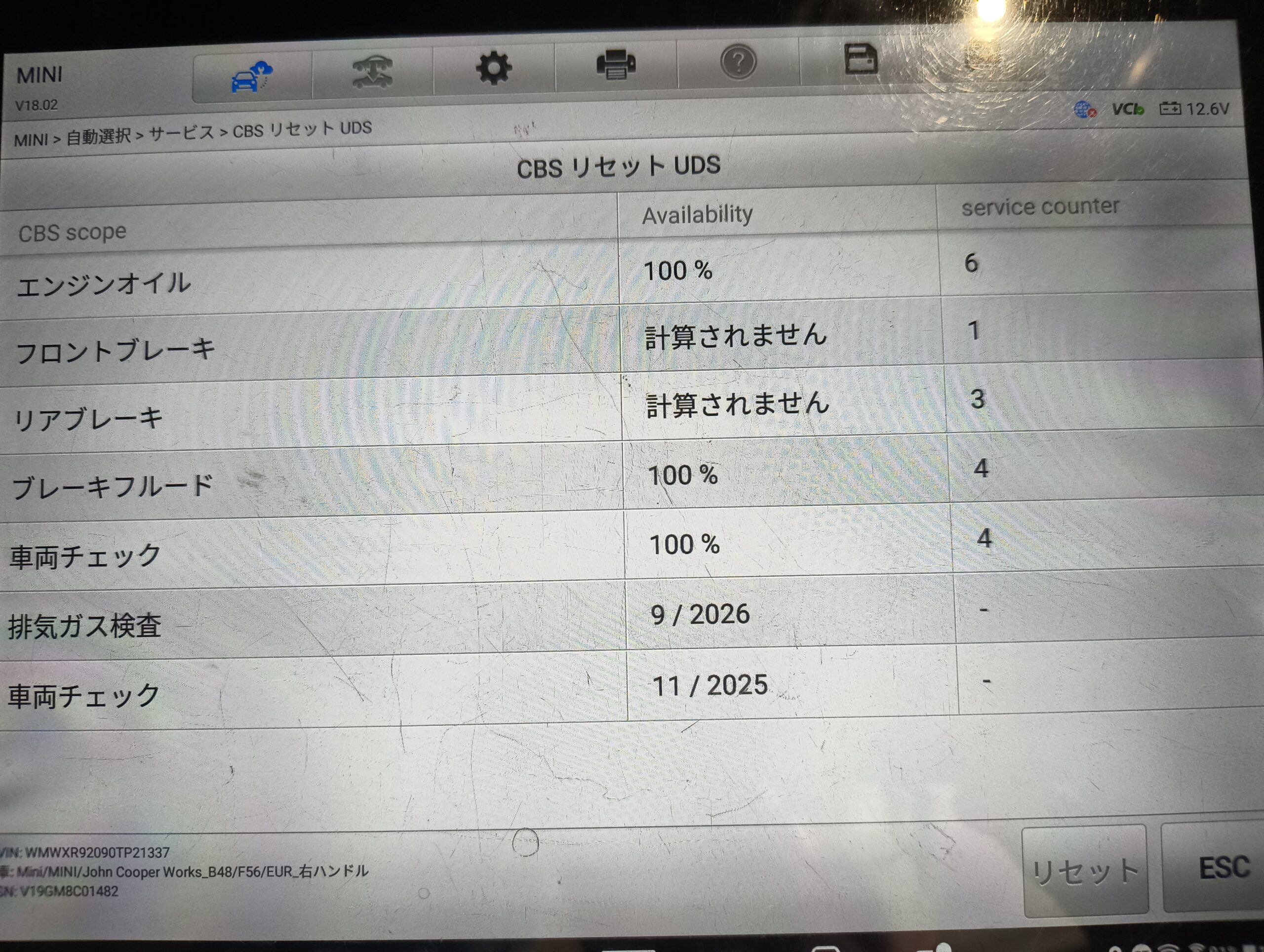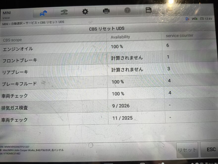 今回はエンジンオイル・ブレーキフルード・車両チェックのリセットです。