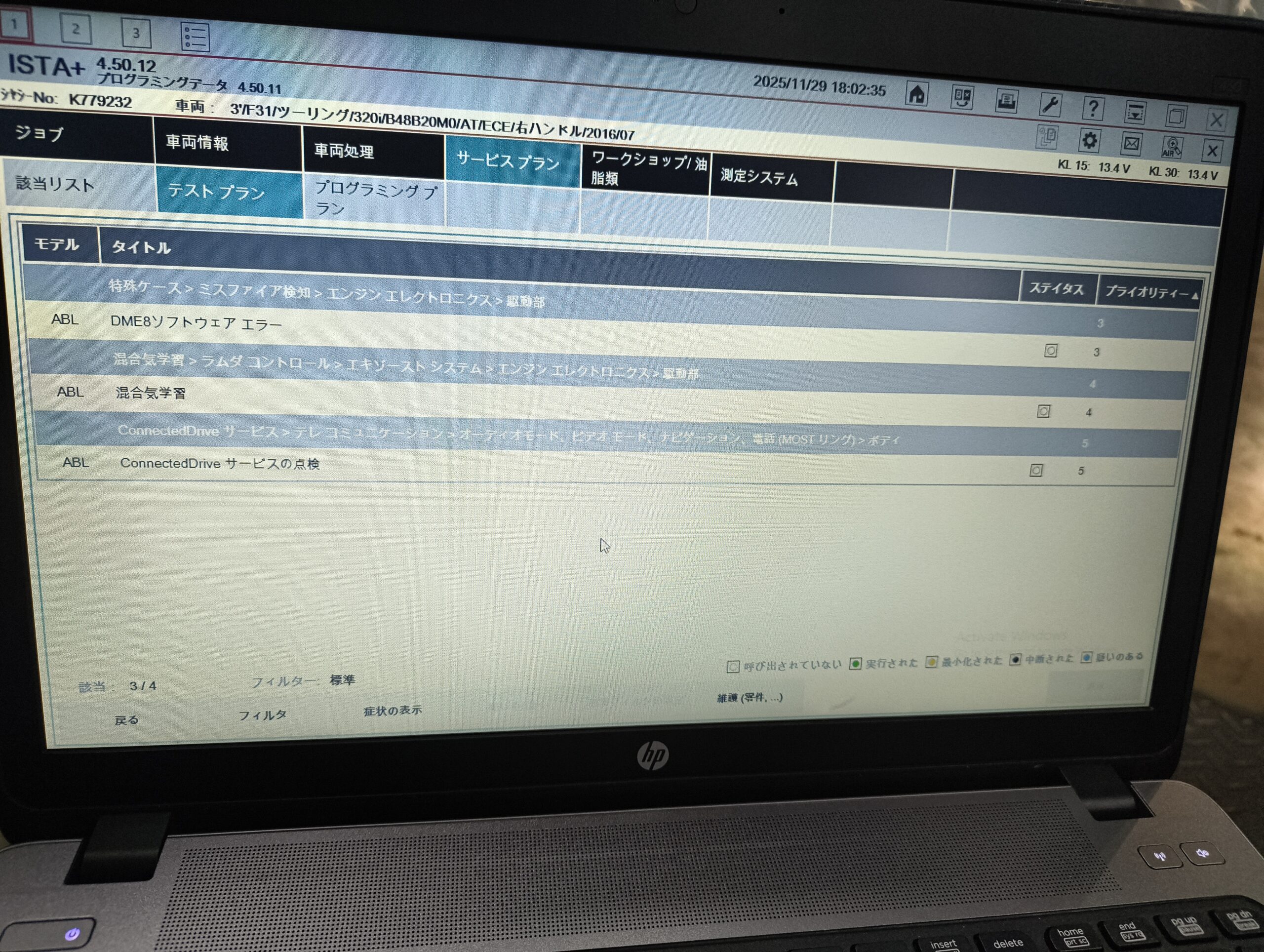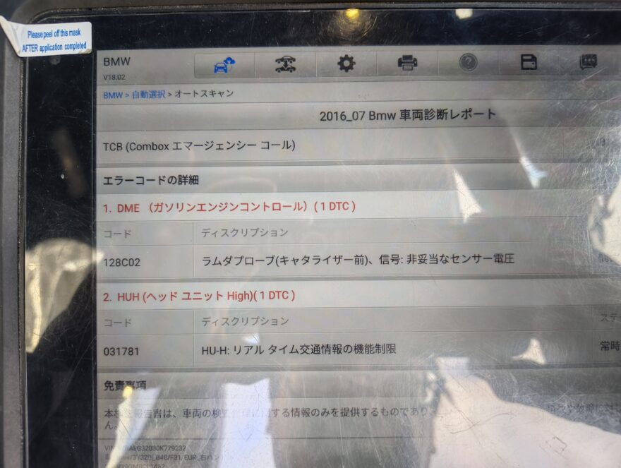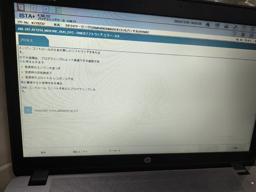 ラムダセンサー交換リプログラミングBMW F31BMW東大阪市DMEソフトウェアエラー