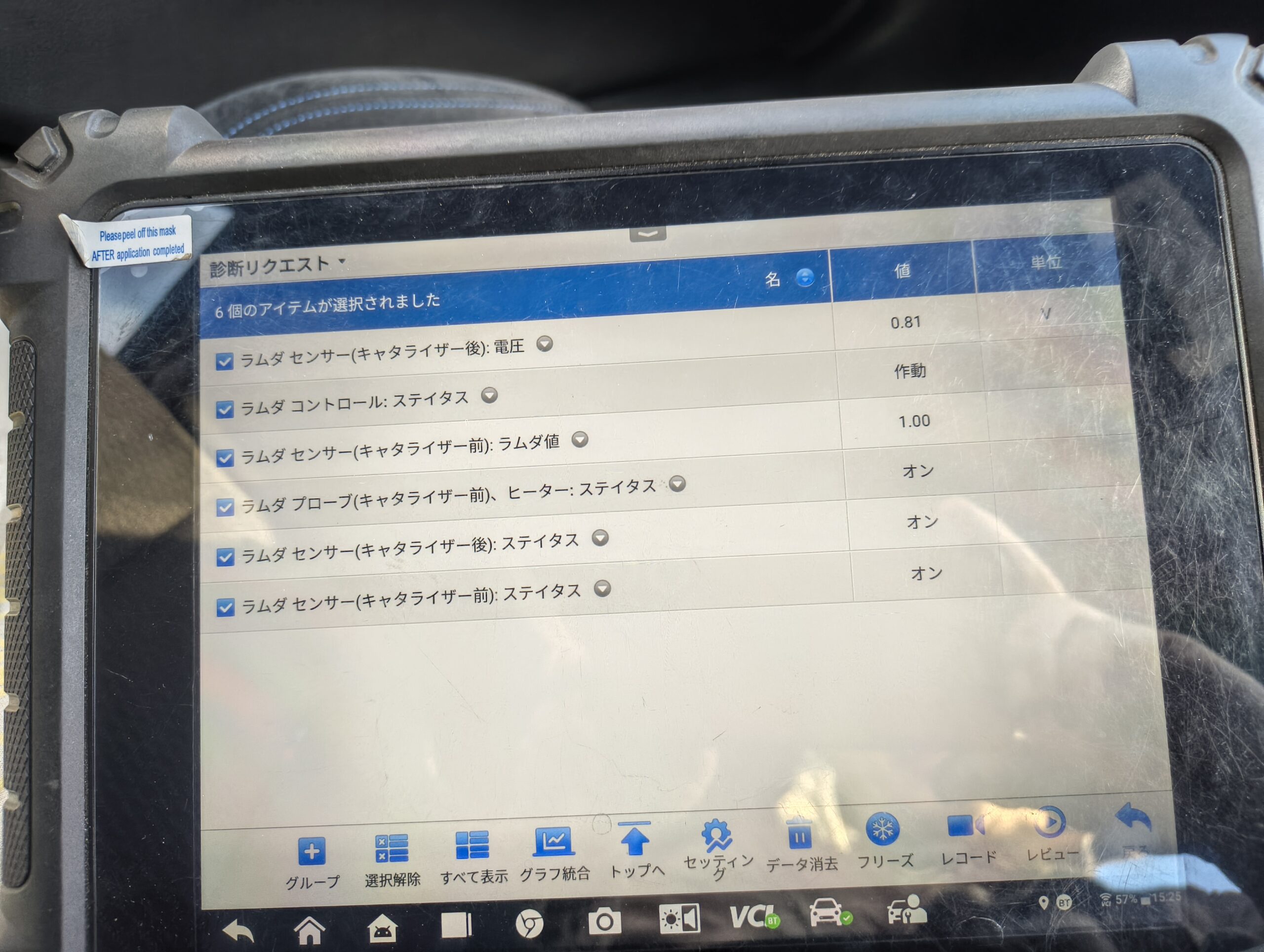交換前は動いていなかったラムダセンサー(キャタライザー前)が交換後はきっちり動作しています。