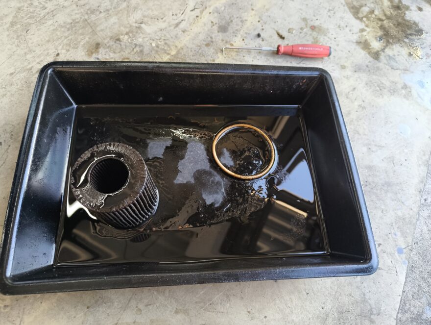 こちらも交換サイクルが長めなのか、オイルがかなりドロドロになっていました。