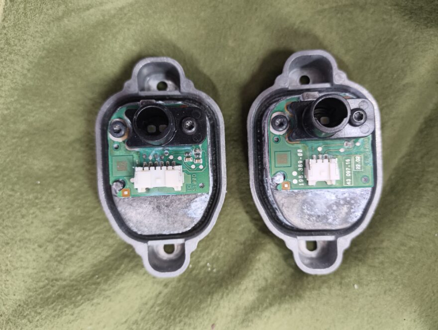 デイライト用のLEDモジュールはケース底に取り付けられているため、水に浸かってチップ類に緑青が見られます。