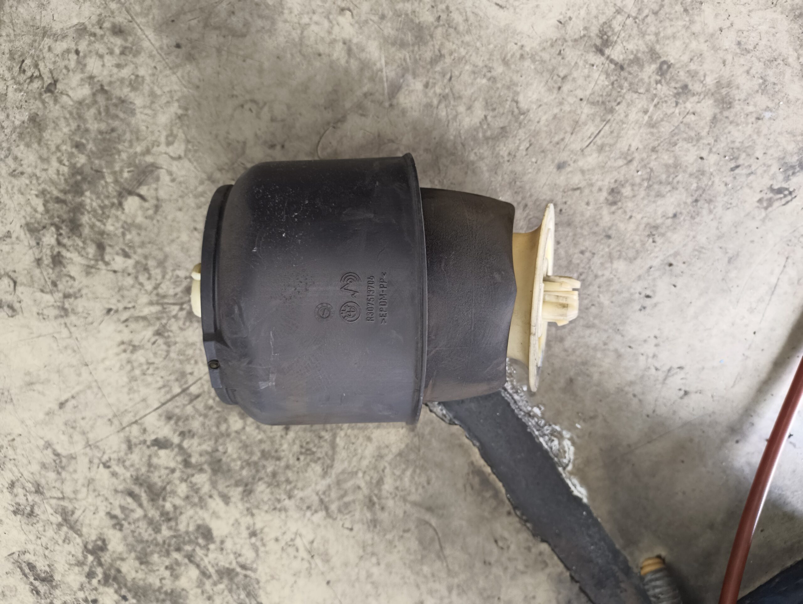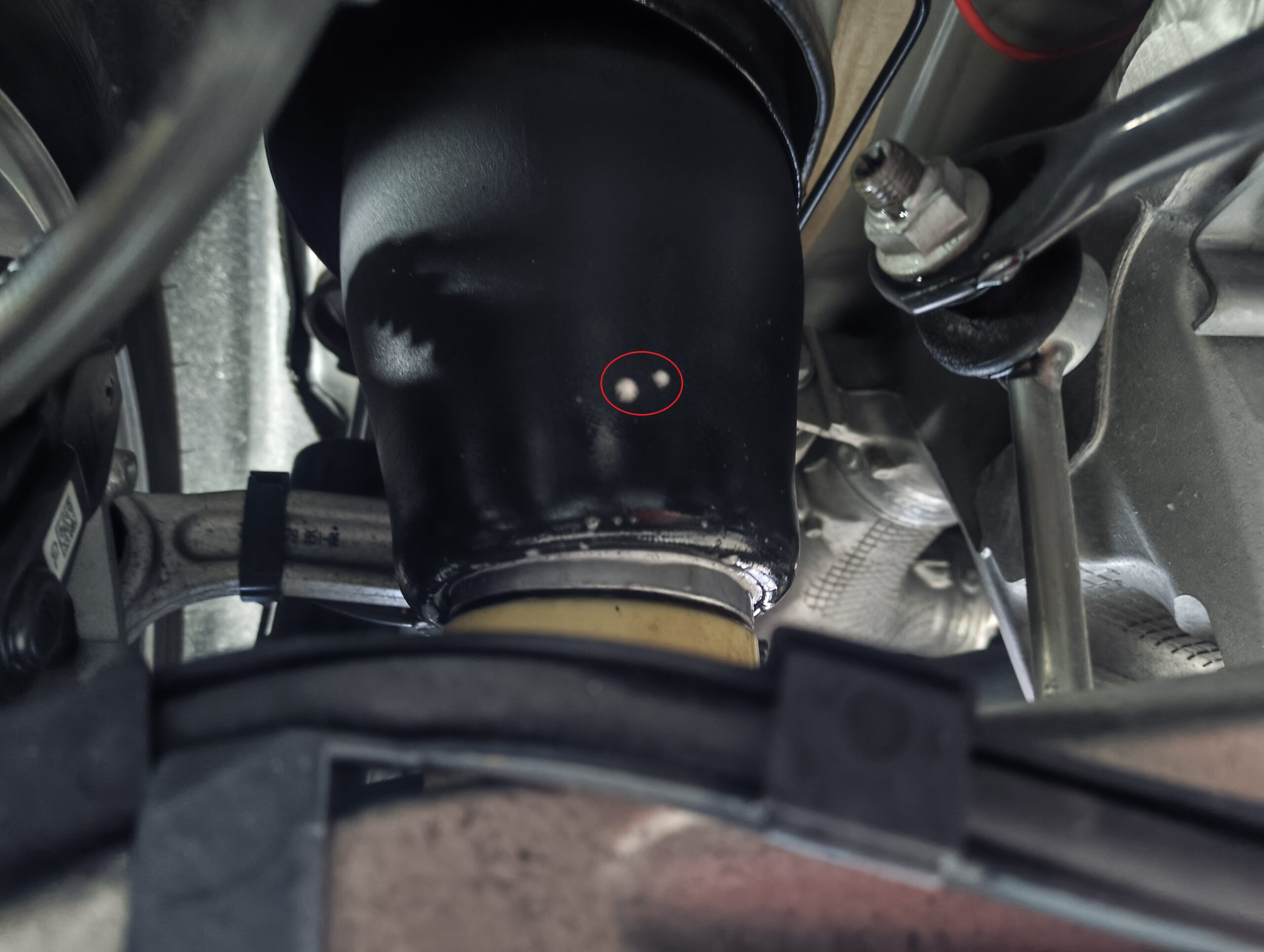 エアサスの空気ばねは言ってみればゴム風船なので、古くなって来るとゴムの硬化でひび割れて漏れたり、何かの拍子に穴が開いたりもします。