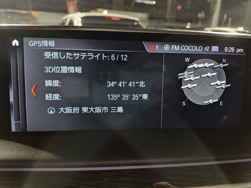 自車位置がずれるという事はGPSアンテナが怪しいので、受信状態を確認してみると...