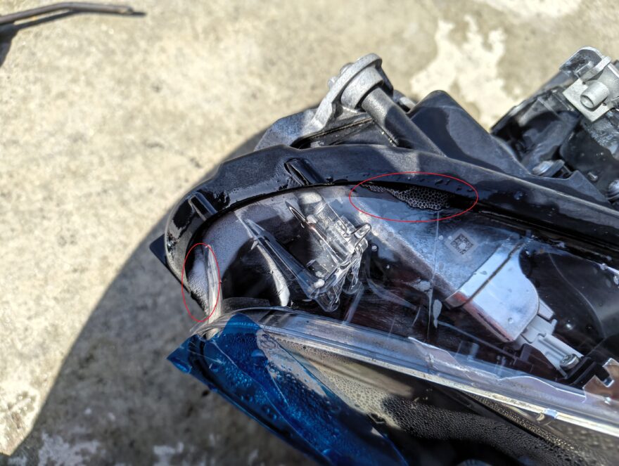 どちらにしても水密テストと乾燥のためにヘッドライトは外します。