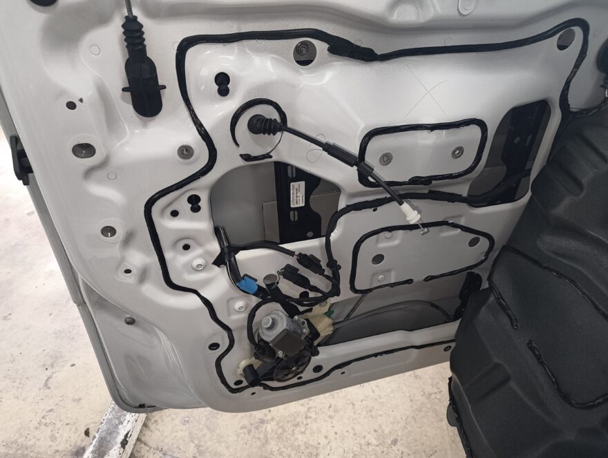 ドアの内張を外して、シーリングスクリーンを剥がして取り付けて行きます。