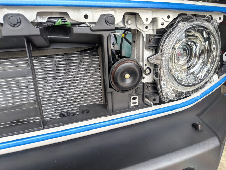グリルを取り外して純正ホーンを取り外します。