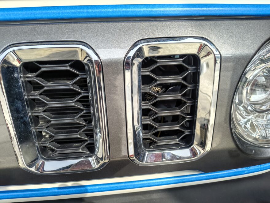 グリルを取り付け表から見るとチラッとホーンが見えています。