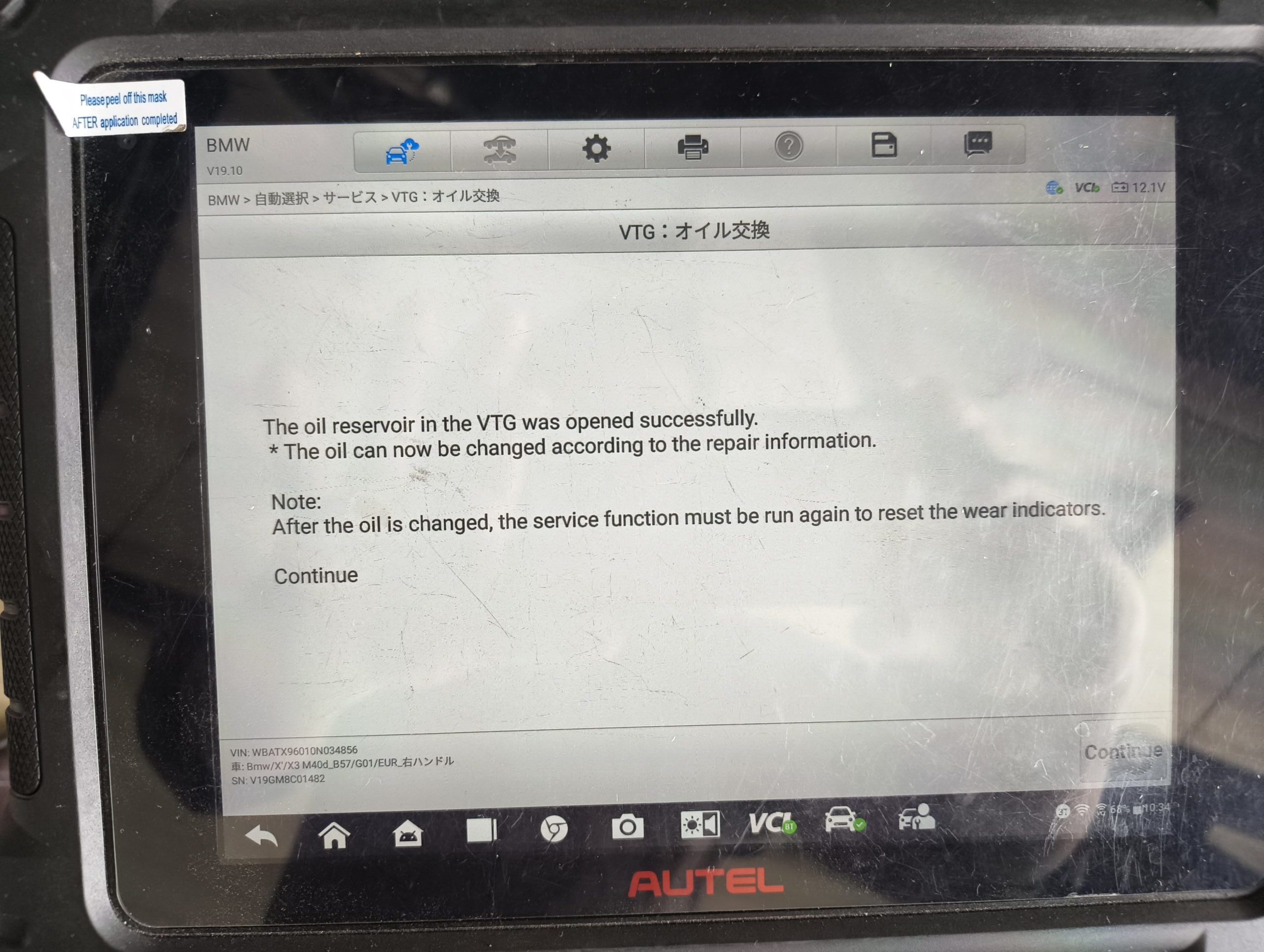 交換後はテスターにてオイル劣化カウントをリセットして完了です。