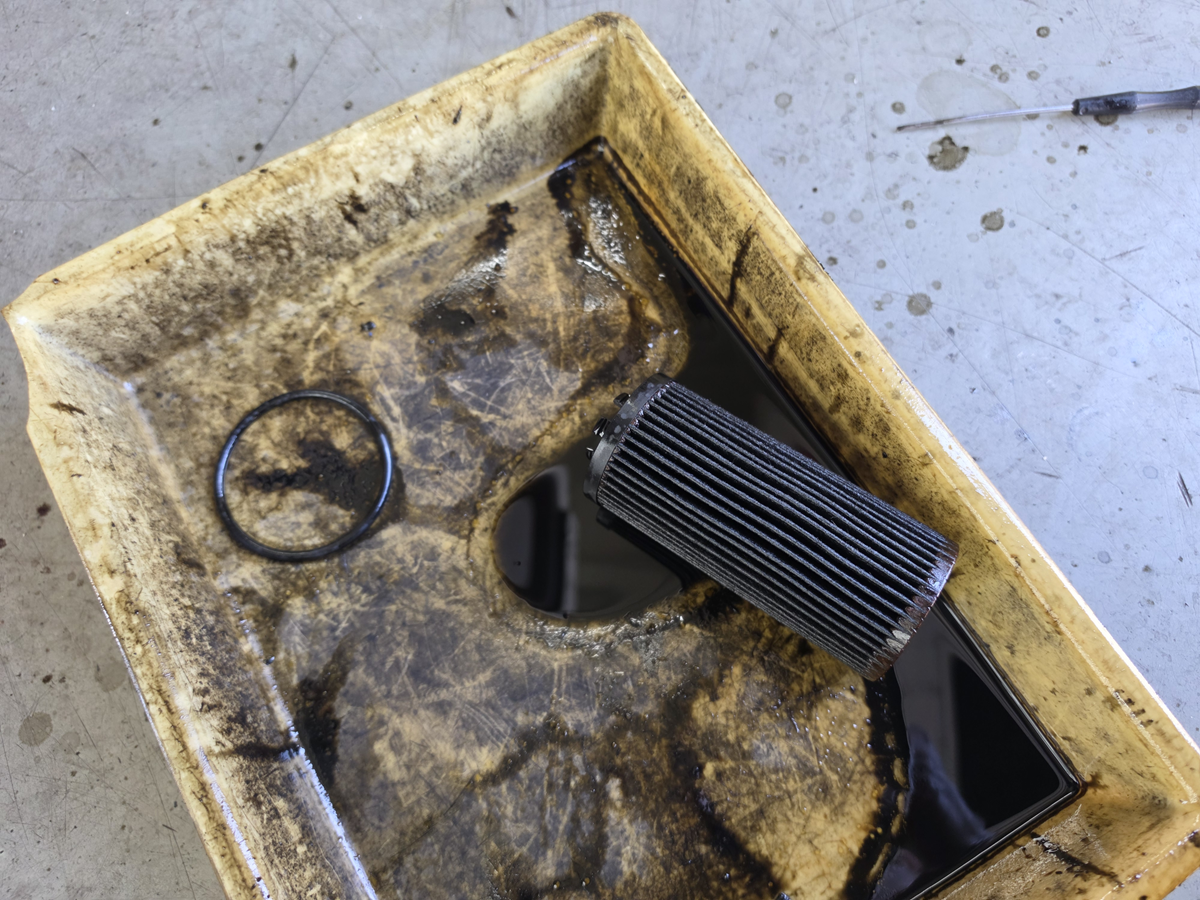 アンダーカバーが外れたら、オイルフィルターを取外しドレンプラグを外してエンジンオイルの抜き取りです。