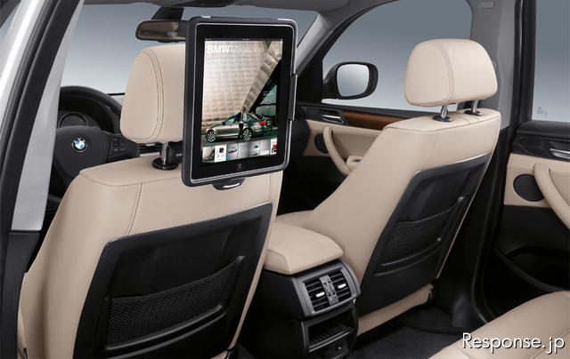 BMWのそれぞれの車の前席ヘッドレスト後部にiPadを取り付けた上で、